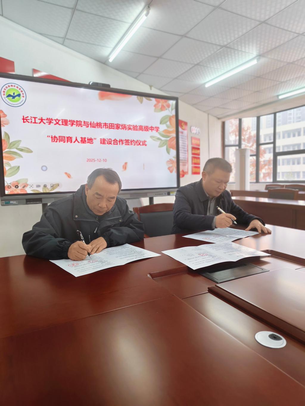 本网讯(通讯员 刘 豪)为深化高校与中学人才培养衔接,2025年12月10日上午,beat365官网中文版本建筑与设计公司经理李继祥一行赴仙桃市田家炳实验高级中学,举行“协同育人基地”合作签约暨授牌仪式。