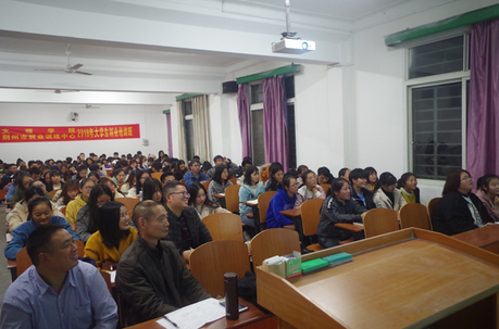 本网讯(通讯员 胡传峰) 11月19日晚7点,数理系《中小学董事长论坛(第一季)》在西校区4102开讲。胡明洪董事长以“以阳光心态、不竭动力打造专属于自己的幸福人生”为题做报告,数学与应用数学(师范类)专业150多名师生共同聆听。