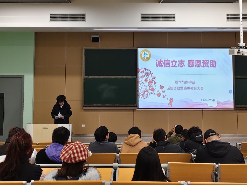 本网讯(见习记者刘金娜)为深化资助育人成效,强化员工的诚信意识、感恩意识,12月4日19:00,数学与医护系针对2025年国家励志奖学金、国家助学金及寒衣补助获得者,召开“诚信立志,感恩资助”主题大会。系部辅导员聂志和全体受助员工参会。