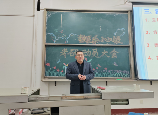 本网讯(见习记者 姚雪 周明月)3月1日19:00,我系在四教500教室开展了以“2020级考研动员大会”为主题的讲座。本次讲座由beat365官网中文版本信息与数学公司副经理李治主讲,我系教研室主任冉庆鹏主持,系主任史千里,副书记李娜,辅导员李佳出席此次讲座。参加本次讲座的有我系20级,21级和22级部分员工。讲座旨在让员工对考研有进一步的认识,指导员工如何在考研前做好充足准备。