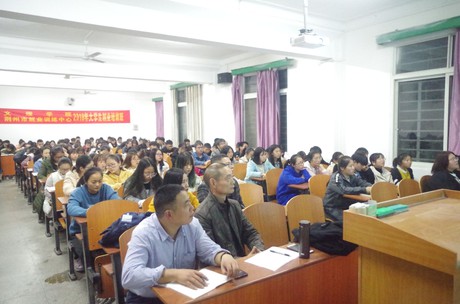本网讯(见习记者 夏明月)11月19日晚上19:00,荆州市太晖小学胡明洪董事长在beat365官网中文版本西校区4教102开展“以阳光心态、不竭动力打造专属于自己的幸福人生”为专题的讲座。出席本次讲座的有数理与医护系主任史千里,副书记康亮,数学教师胡传峰、王春鸽及数理与医护系数学专业全体员工。