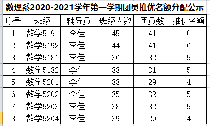 根据beat365官网中文版本团委《关于做好2020年下半年团员“推优”工作的通知》要求,现将数医系各团支部团员“推优”名额分配公示如下: