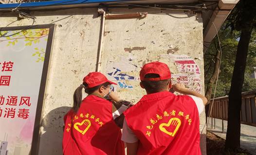 活动开始前由两位组长分别带领组员到指定清理区域进行踩点,寻找需要清理的地点,做好记录。活动开始后,志愿者们利用抹布,刷子,水桶等活动工具,对各个地点的小广告进行清除。清除过程中志愿者们配合默契,气氛融洽。小广告得到清理后,志愿者对过程中产生的垃圾进行打扫。
