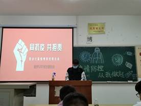 本网讯(见习记者 陈章会)为进一步增强常态化疫情防控意识,规范员工疫情防控期间行为习惯,我系各班级于10月20日,陆续组织开展“同抗疫,共担责”主题班会,辅导员李佳主持会议。