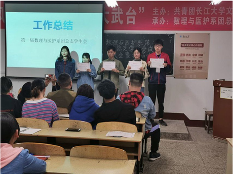 本网讯(见习记者 夏明月)10月9日晚19:00在四教201,数理与医护系第二届团总支员工会成立大会举行。参与此次会议的有数理与医护系团总支员工会指导老师康亮,辅导员王慧颖、杨琪,系第一届团总支员工会主席团成员及各部门部长、干事。本次会议由秘书处部长胡磊主持,会上康书记为第一届团总支员工会成员颁发了荣誉证书。