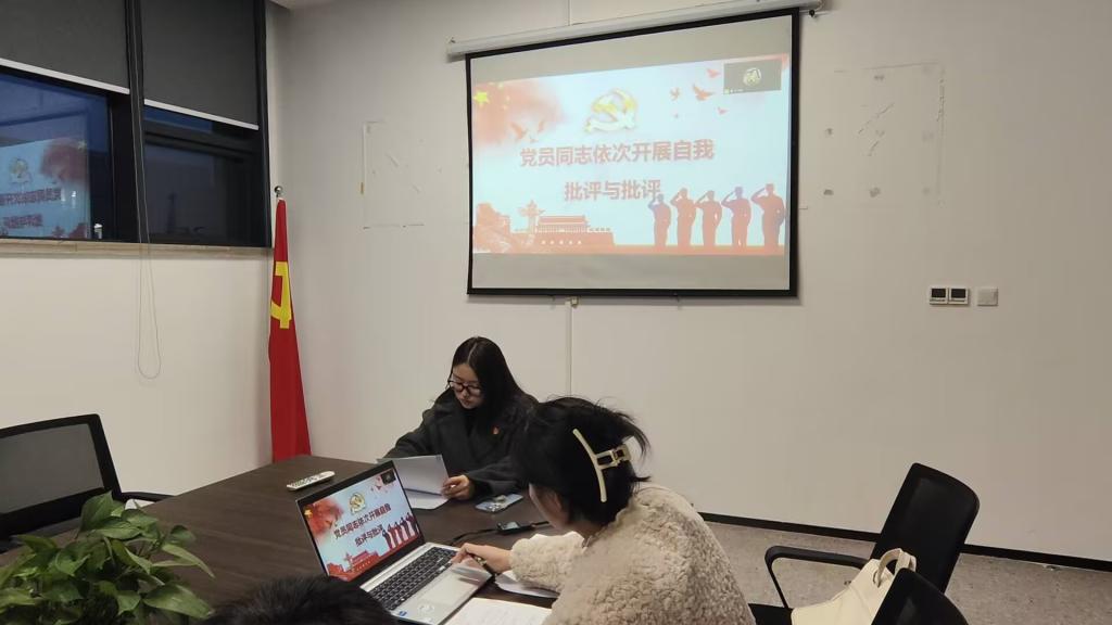 民主生活会阶段,燕梦蝶同志带领全体党员深入学习习近平新时代中国特色社会主义思想并代表支部委员会作工作报告,报告回顾了过去一年党支部在公司党委领导下开展的各项工作及取得的成效,包括组织理论学习、活动开展、社会实践等方面。她强调,全体党员需继续凝心聚力,围绕公司中心任务,为支部建设注入新活力。接下来,全体党员依次进行自我剖析,深入查摆思想、学习和工作中的不足;其他党员同志则开诚布公地提出意见建议。通过坦诚交流,党员们进一步明确了改进方向,纷纷表示将以实际行动践行初心使命。民主评议党员阶段,全体成员严格按照政治表现、工作学习、组织生活、遵纪守法及道德品质等评议标准,以无记名方式对支部党员进行客观公正的评议,充分体现了党员民主监督的严肃性与规范性。最后,燕梦蝶作总结发言,她指出,此次会议是一次思想淬炼、政治历练的生动实践,全体同志要以此为契机,持续强化理论武装,锤炼党性修养,立足岗位担当作为,为公司高质量发展和党的事业贡献青春力量。