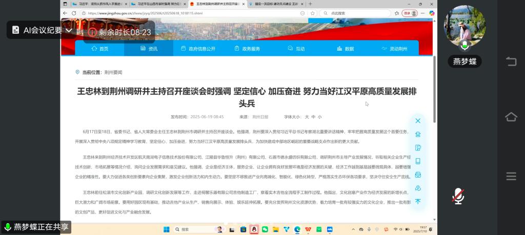 活动开始,全体党员重温入党誓词;交纳本月党费。接下来,燕梦蝶带领大家集体学习,学习内容主要分为三个部分。一是学习习近平总书记重要讲话和指示批示精神:习近平在中共中央政治局第二十一次集体学习时的讲话:“坚持从抓作风入手推进全面从严治党 把新时代党的自我革命要求进一步落实到位”;习近平在山西考察时的讲话:“努力在推动资源型经济转型发展上迈出新步伐,奋力谱写三晋大地推进中国式现代化新篇章”。二是深入贯彻中央八项规定精神学习教育:石泰峰同志在党的十八大以来深入贯彻中央八项规定精神的成效和经验交流研讨座谈会上的讲话;王忠林在省委党的建设工作领导小组(扩大)会议上上的讲话:“‘七查七看’扎实开展学习教育‘回头看’ 动真碰硬 坚决把查摆问题改彻底治到位” ;省委常委会召开学习教育查摆问题情况检视交流会,切实增强深查实改坚定自觉,推动学习教育取得更大成效,王忠林主持并作总结讲话;王忠林到荆州调研并主持召开座谈会时的讲话:“坚定信心 加压奋进 努力当好江汉平原高质量发展排头兵”;云南省曲靖市统计造假、政治生态恶化的典型案例;湖北省委学习教育工作专班、省纪委办公厅关于黄冈市蕲春县7名党员干部在学习教育期间违规吃喝严重违反中央八项规定精神问题的通报;湖北省委学习教育工作专班、省纪委办公厅关于江陵农村商业银行3名管理人员在学习教育期间违规吃喝严重违反中央八项规定精神问题的通报;中共湖北省委深入贯彻中央八项规定精神学习教育工作专班、中共湖北省纪委办公厅关于7起党员干部、公职人员酒驾醉驾典型问题的通报。三是贯彻落实beat365官网中文版本校内会议精神:坚定信心决心铆足干劲拼劲,公司召开2025年暑期工作部署会;锚定一流目标建功支点建设王建平讲授“七一”专题党课。