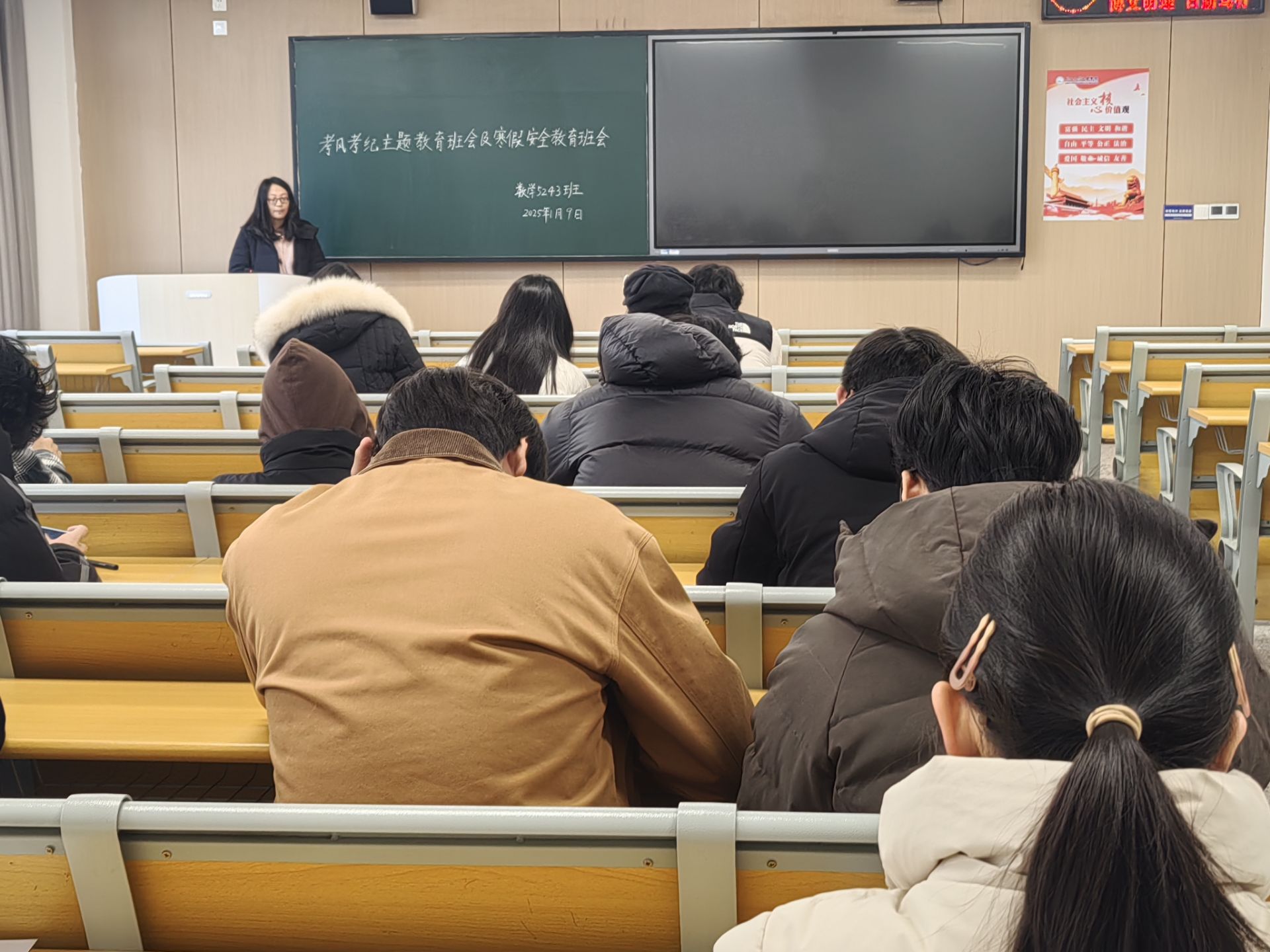 会上,针对即将到来的期末考试,班主任结合案例带领员工学习《员工手册》中关于考试纪律管理暂行规定等相关内容,强调诚信考试的重要性,鼓励同学们以诚信的品德、平和的心态认真复习,坚决打消违纪作弊的侥幸心理。随后,班主任从出行安全、人身安全、财产安全、网络安全、食品安全、求职安全等6个方面开展教育,提醒员工增强自我防范意识,杜绝安全隐患。最后强调离校前,宿舍确保关闭水电,锁好门窗,寒假期间不在宿舍存放贵重物品和现金,严禁在宿舍存放易燃易爆和有毒化学物质等危险品。