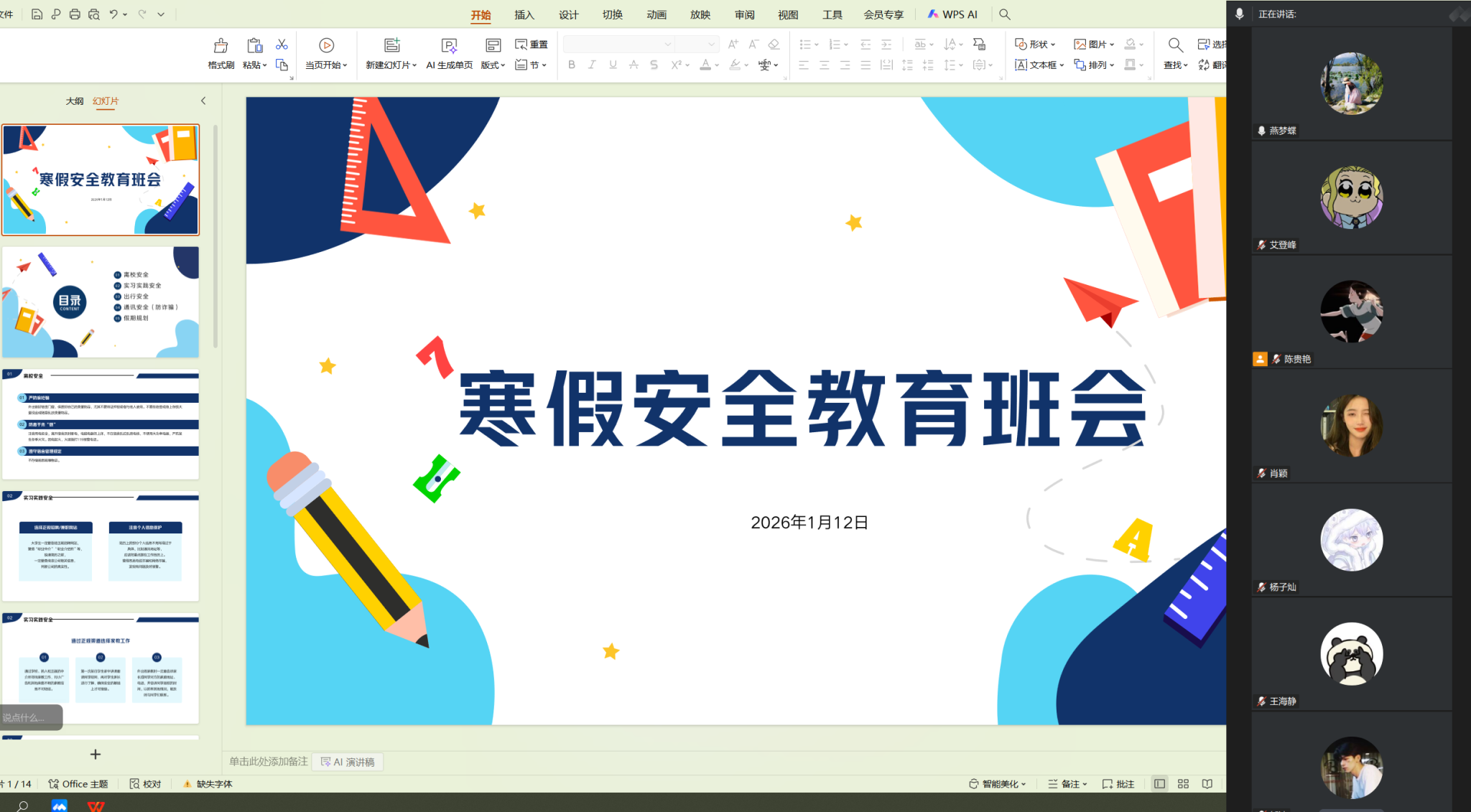 为切实加强员工诚信教育和寒假安全教育,提高员工的诚信意识和自我保护能力,切实加强放假前和寒假期间员工安全管理工作,1月7日,数学与医护系各班召开寒假主题班会。本次班会由各班班主任主持,全体同学悉数参与。