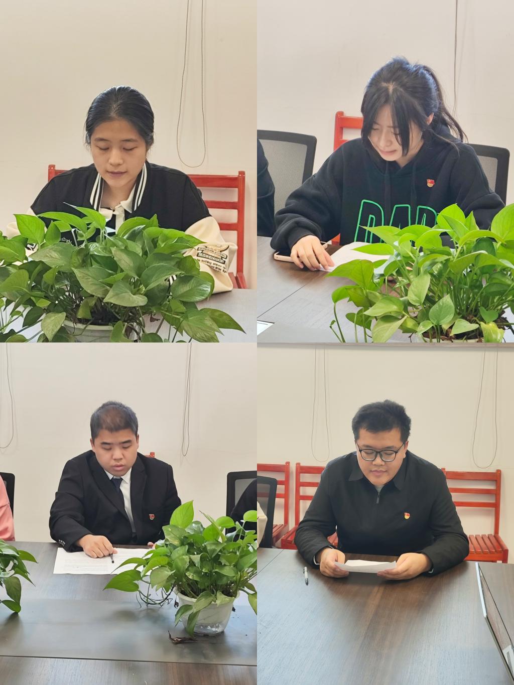 表决阶段,通过无记名投票的方式,全票通过四名预备党员的转正申请。燕梦蝶宣布本次支部大会决议一致同意庹新宇、高玉婷、王诗琪、罗鑫宇四名同志转为中共正式党员的申请,并鼓掌通过。随后,四名正式党员同志表态,表明自己对大家提出意见的看法和今后的决心,全体与会党员进行庄严宣誓。最后,燕梦蝶作总结发言,对这四名转正的同志表示祝贺,并希望这几位党员同志都要牢记自己的党员身份,牢记入党誓词,始终以身作则,加强专业理论知识的学习和自身的修养,提升综合素质,增强为社会服务的本领,做合格的共产党员。