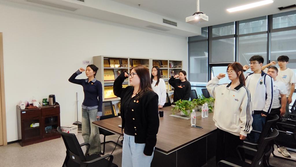 在支部主题党日活动中,全体党员重温入党誓词,交纳本月党费,集体学习《中国共产党章程》(第五章);《人民日报》刊发文章《牢牢把握教育的政治属性、人民属性、战略属性 加快建设教育强国》等内容。