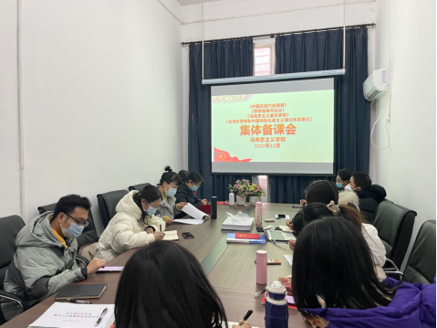 (通讯员:李晶晶)2022年12月29日,马克思主义公司召开了集体备课会,全体思政课专职教师参加会议。会中,应教育部要求,马院全体教师对新学期各门思政课统一课件进行学习,并以课程组为单位讨论实施方案。