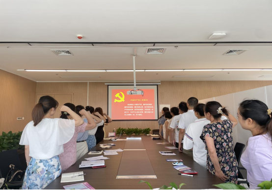 在涂晓洁老师的领读下,全体党员重温了入党誓词,随后集中缴纳了党费;接着党员老师们集体诵读了《中国共产党章程》第七章的部分内容,并开展了微党课学习。
