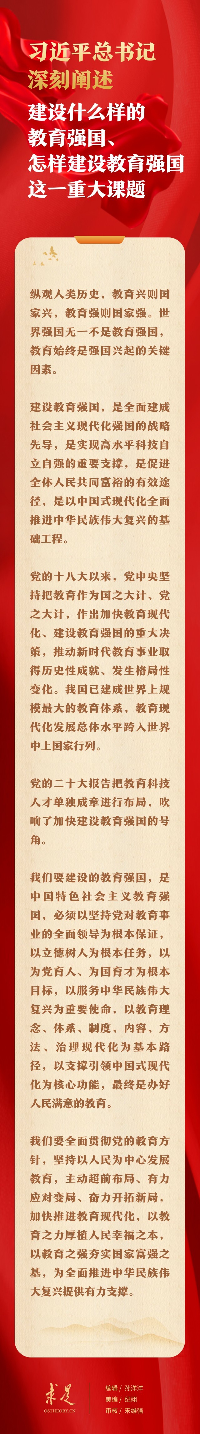 习近平总书记深刻阐述建设什么样的教育强国、怎样建设教育强国这一重大课题