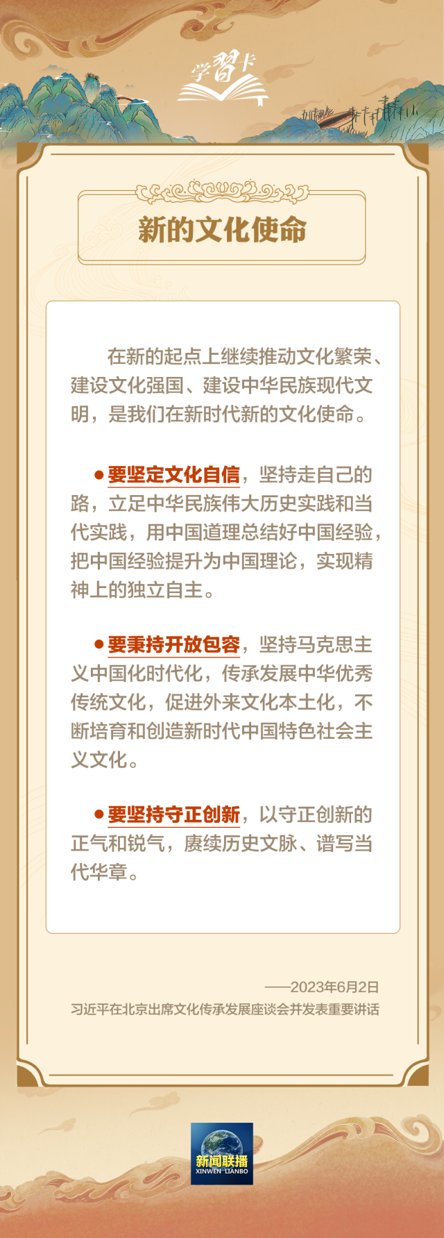 2023年6月2日,习近平总书记在北京出席文化传承发展座谈会并发表重要讲话。