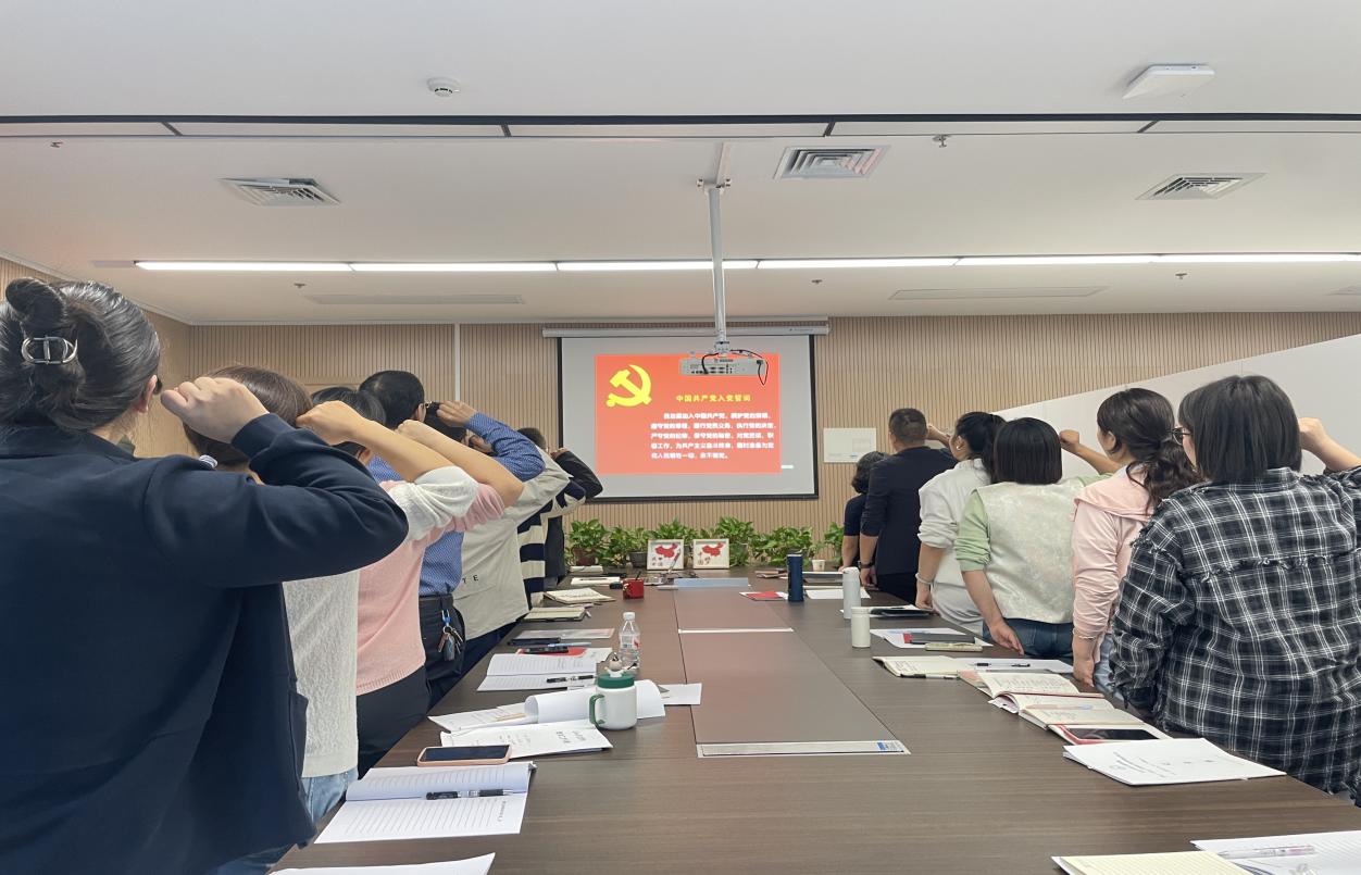 在赵霞老师的领读下,全体党员重温了入党誓词、《中国共产党章程》第八章至第十一章的部分内容,并集中交纳了党费。