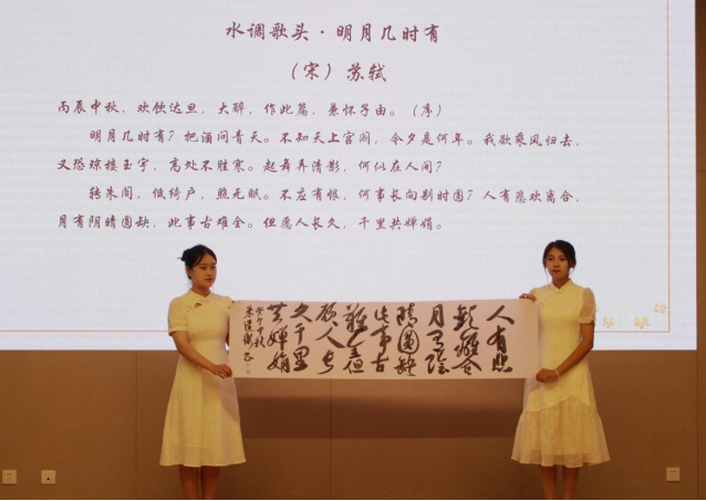 最后,伴随着《借月》《但愿人长久》的悠扬歌声,本次“迎中秋”诗歌晚会逐渐接近尾声。今晚的精彩演绎,展现了中华经典古诗词的强大魅力和影响力,让我们感受到了浓浓的中秋情谊,共度了一个美好的月圆之夜,同时,也让我们体会到传统节日凝结着中华民族的民族精神和文化情感,提升了公司青年学子的文化认同感和文化自信。