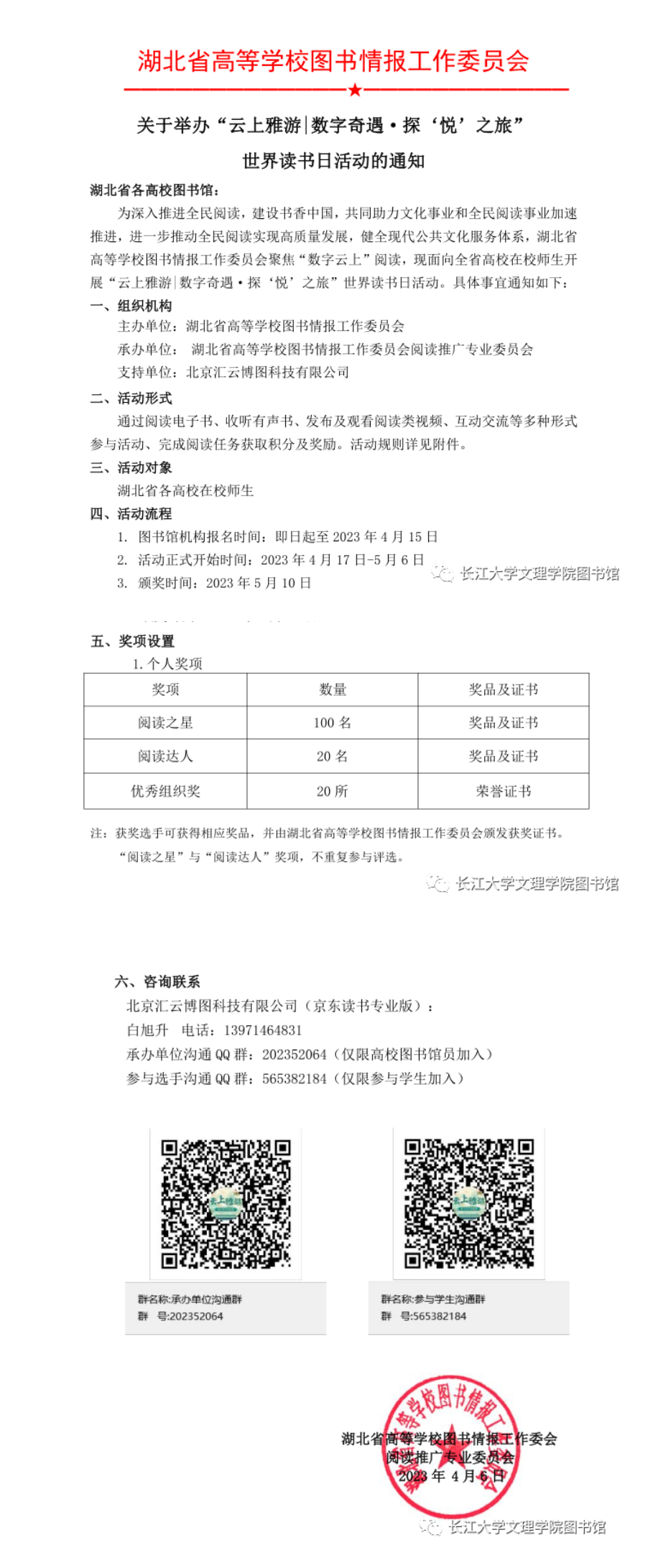 关于举办 “ 云上雅游| 数字奇遇 · 探 ‘ 悦 ’ 之旅 ”世界读书日活动的通知