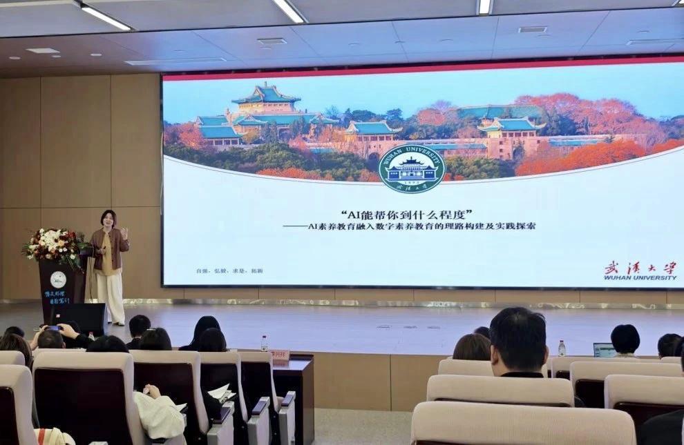 武汉大学图书馆研究馆员龚芙蓉分享报告《“AI能帮你到什么程度?”——人工智能素养教育融入数字素养教育的理论构建与实践探索》。她介绍了国内外高校图书馆AI素养教育现状,提出结合知识技能、能力素养和情感价值的教育框架,并讲解了基于知识图谱和AI工具的教学方法。