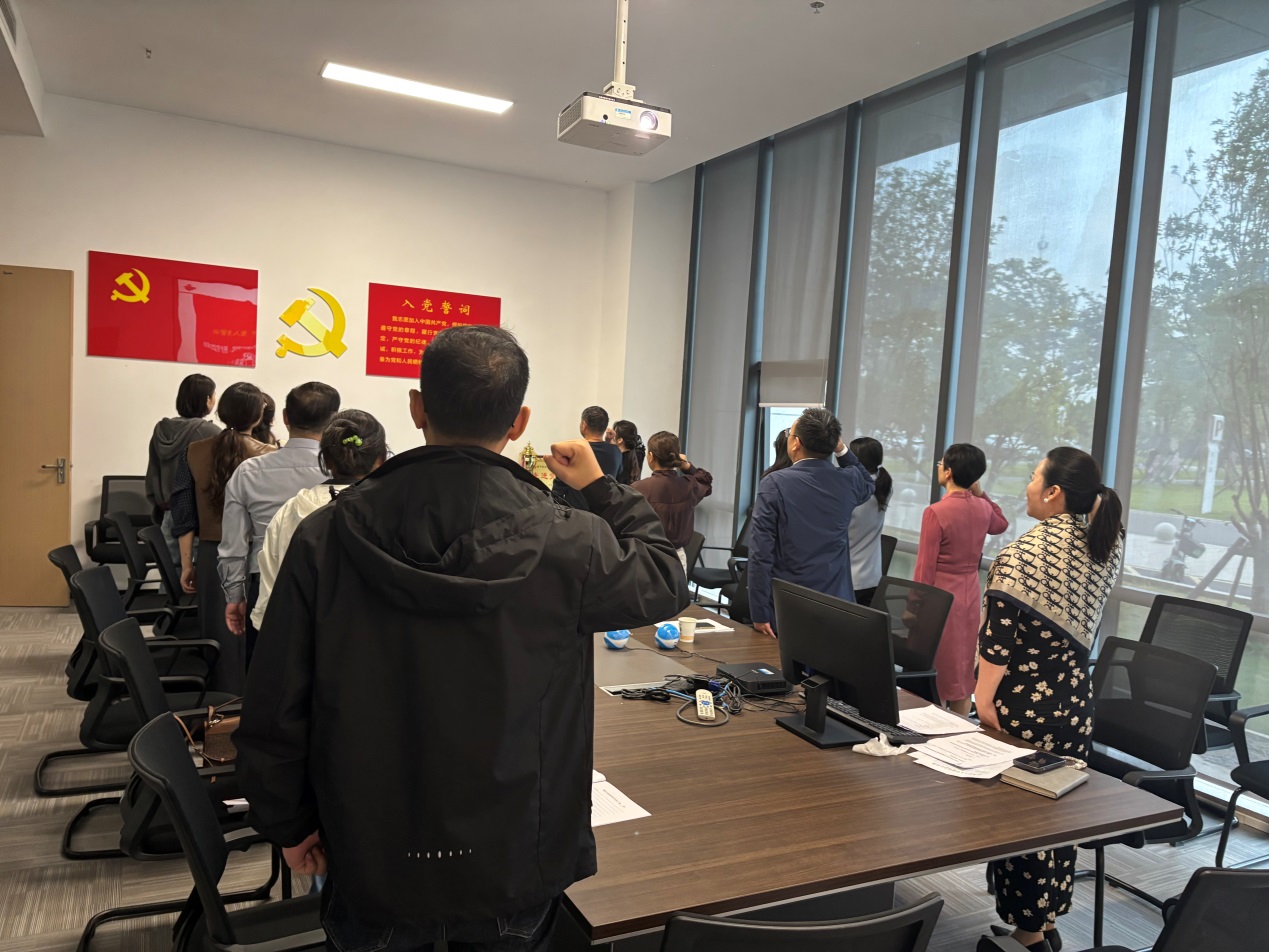 主题党日活动阶段,首先由代三妹同志带领全体党员重温入党誓词,并带领大家集体学习《中国共产党章程》(第八章至第十一章)。