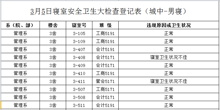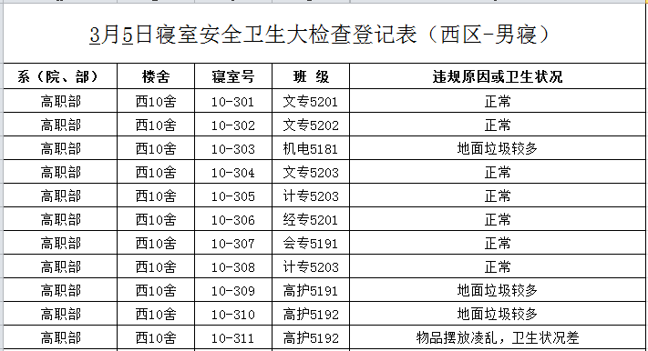 2020-2021学年第二学期第1周寝室检查结果通报
