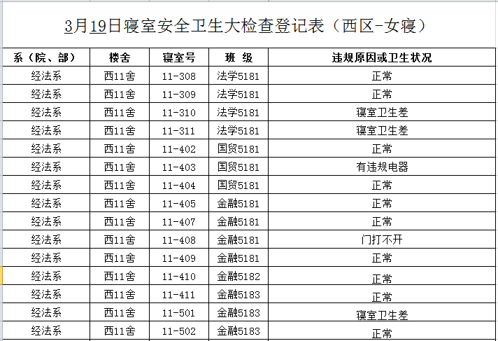 2020-2021学年第二学期第3周学工人员寝室值班通报