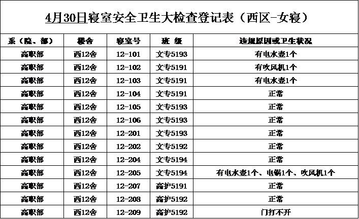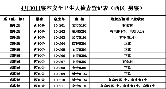 2020-2021学年第二学期第9周系(院、部)早晚自习考勤通报