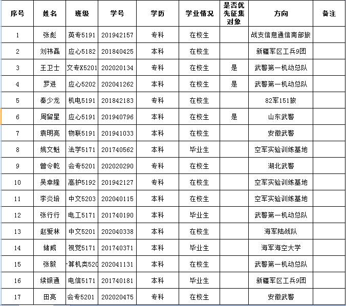 通过荆州区武装部组织的体检、政审考核、心理测试、役前训练等环节,公司张行行等16名同学经湖北省荆州市荆州区人民政府征兵办公室批准光荣入伍,现根据相关规定予以公示,公示时间为2021年9月18日至9月23日。如有异议,请在公示期内向公司纪检监察部或荆州区武装部进行反映。