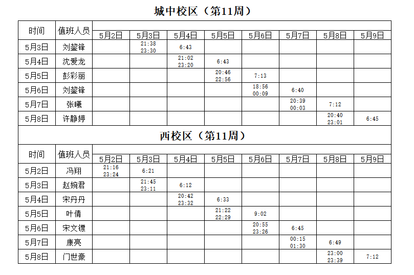 2021-2022学年第2学期第11周学工人员寝室值班通报
