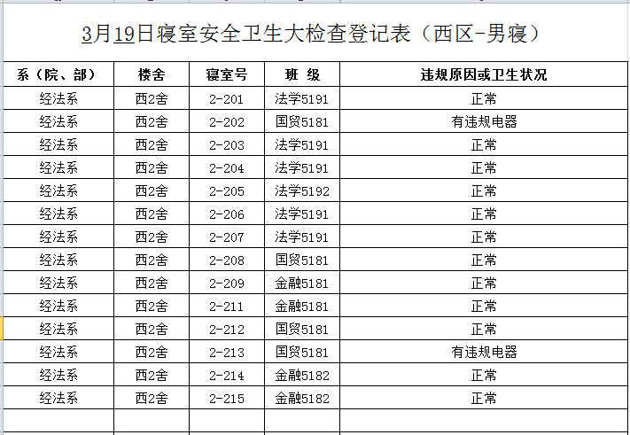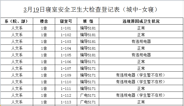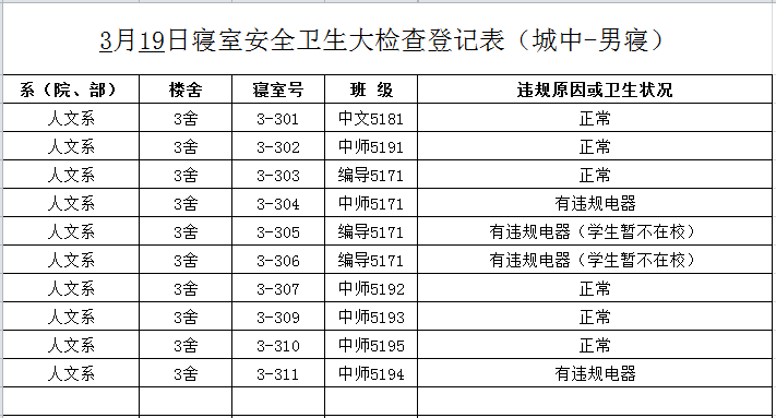 2020-2021学年第二学期第3周系(院、部)早晚自习考勤通报