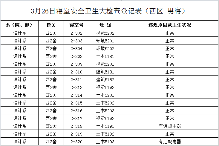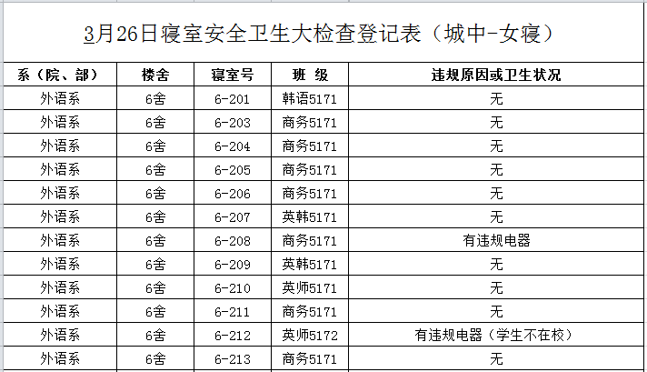 2020-2021学年第二学期第4周系(院、部)早晚自习考勤通报