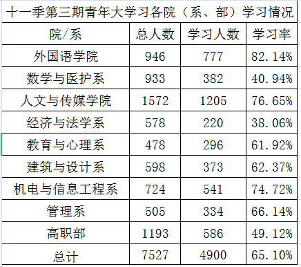 beat365官网中文版本十一季第三期青年大学习各院(系、部)学习情况公示