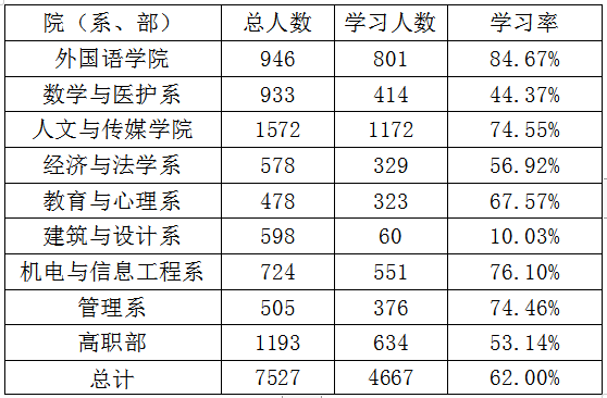beat365官网中文版本十一季第一期青年大学习各院(系、部)学习情况公示