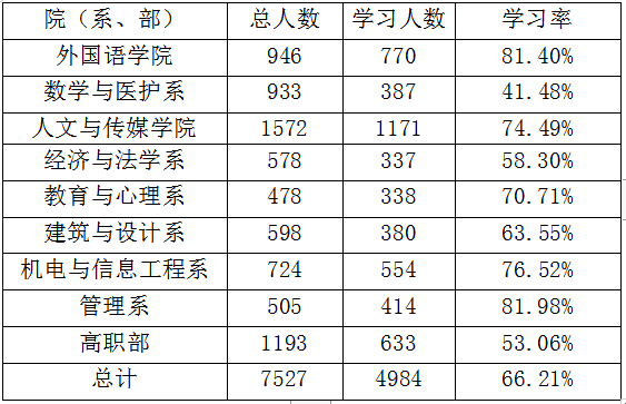 beat365官网中文版本十一季第七期青年大学习各院(系、部)学习情况公示