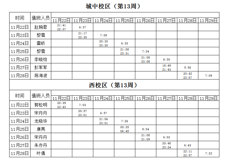 2021-2022学年第1学期第13周学工人员寝室值班通报