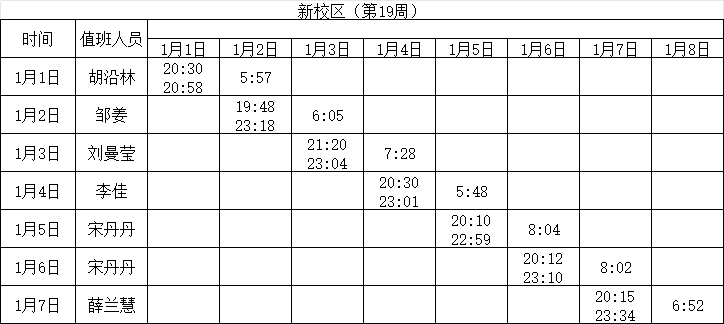 2023-2024学年第一学期第19周学工人员寝室值班通报