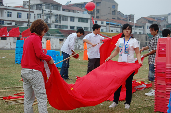 本网讯(员工记者 杨立婷)926下午,公司体育场内红旗招展、人山人海。整场歌会秩序井然、高潮迭起,让现场的观众们充分感受到了公司师生对祖国六十周年到来的无限热情,这背后也凝聚着幕后工作人员辛勤的汗水。