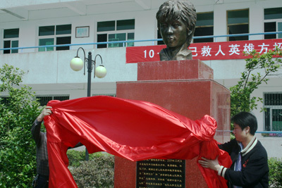 5月23日上午十点,方招铜像在其高中母校湖北罗田县育英中学揭幕。荆州市宣传部、罗田县有关领导、方招的父母及育英中学全体师生参加了揭幕典礼。湖北电视台、荆州电视台、黄冈电视台、罗田电视台及多家平面媒体的记者对揭幕典礼进行了现场报道。