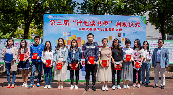 李琴宣布第三届“泮池读书季”开幕。她说,我国自古以来就有崇尚读书的传统,圣贤由学而成、道德由学而进、才能由学而长。只有视读书如生命、不断思考,才会理解“人文”的真正含义,才会追求人类的普世价值。她呼吁同学们多读书,不仅在“世界读书日”,更应在生活中的每一天。