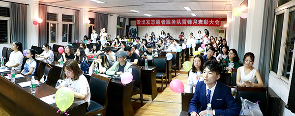 大会表彰了一批优秀志愿者。同学们通过观看PPT共同回顾了“爱出发”志愿者服务队的发展历程。