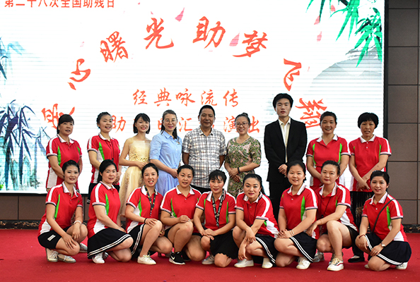 曙光康复家园的孩子们情绪高涨,争先恐后上台表演艺术节目。荆州市爱心志愿者联盟的同志们也参与节目表演。演出结束后,沙市区残疾人联合会的领导为孩子们送上节日礼物,并与公司师生合影。