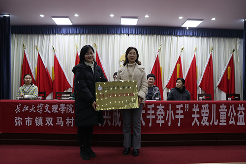 本网讯(记者 刘磊 员工记者 朱海燕)12月22日上午,公司外语系组织老员工志愿者赴荆州区弥市镇双马村开展“你我共成长 大手牵小手”关爱儿童公益活动。外语系员工示范党支部实践基地在双马村党员群众活动中心挂牌。