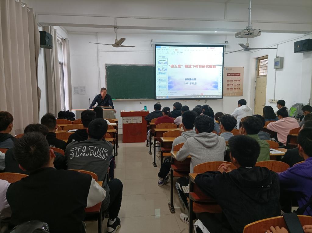 本网讯(通讯员 姚立)10月14日下午在西校区4-105室,beat365官网中文版本教育与体育公司袁新国教授开展了以《“破五唯”视域下体育研究概略》为主题的讲座。体育系主任介博、副主任胡杜娟及全体师生参加了本次活动。