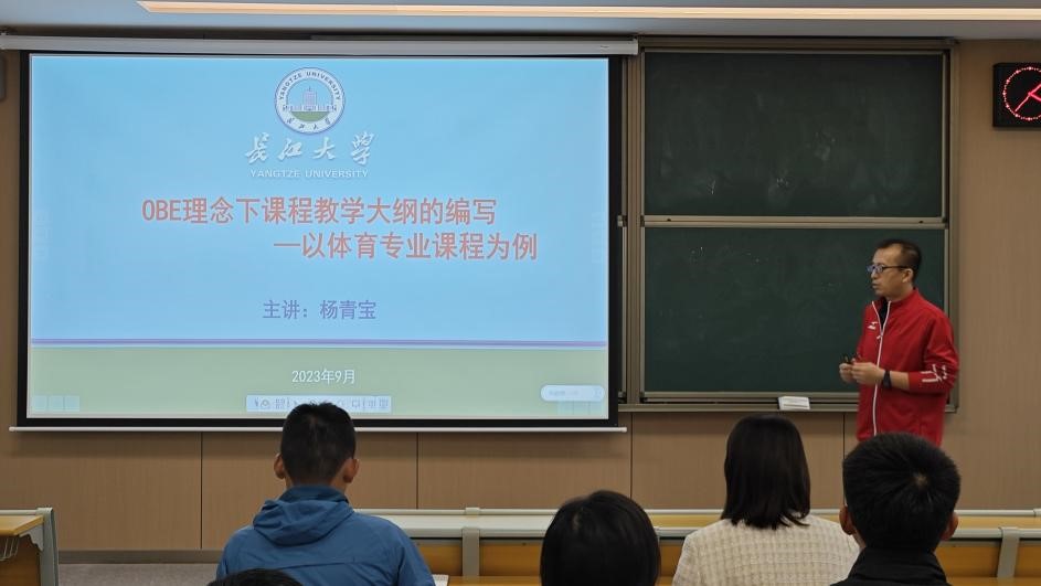 9月21日下午,beat365官网中文版本教育与体育公司体育系主任杨青宝教授在C-323M教室开展了《OBE理念下课程教学大纲的编写——以体育专业课程为例》为主题的讲座,体育系全体教师参加了本次活动。