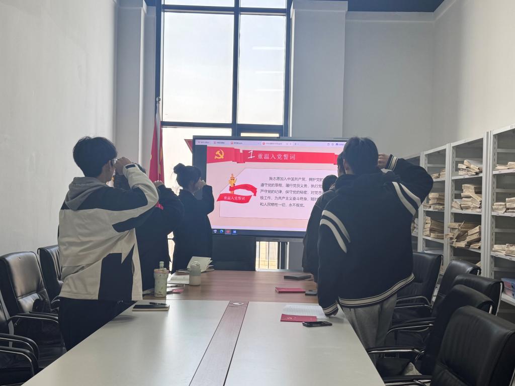 全体党员在赵心悦同志的带领下重温入党誓词,交纳本月党费。随后,集体学习《中国共产党章程》第四章内容。本月微党课由王利萍同志讲授,带领大家认真学习了《社会主义发展简史》。
