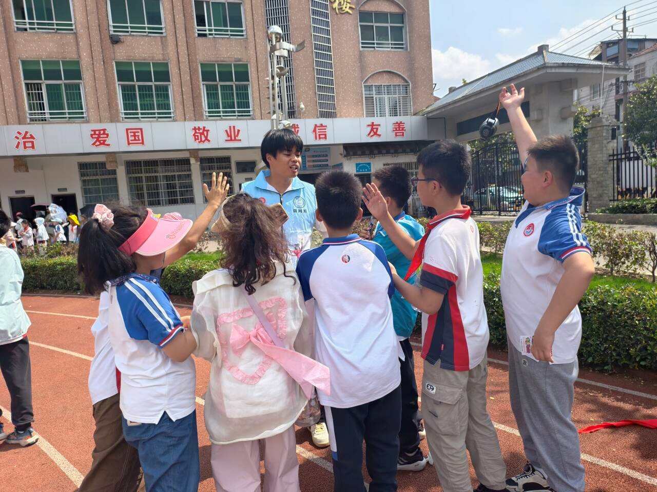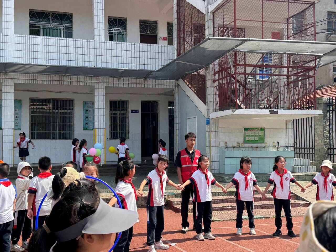 此次活动的成功举办,离不开体育系阳光体育志愿队和员工党支部的精心策划和组织。成员们提前来到附小,布置场地、准备器材,确保活动的每一个环节都能顺利进行。他们在活动中耐心指导孩子们,为他们加油鼓劲,用自己的热情和爱心为孩子们带来了难忘的六一儿童节。