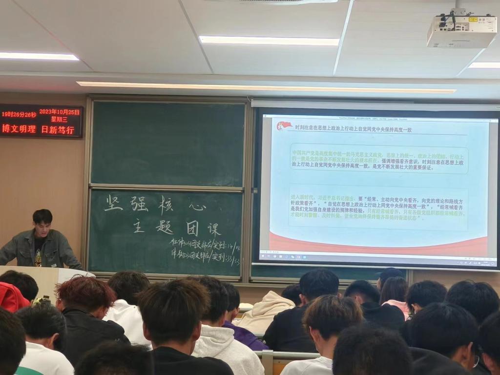 本次团课,主要向全体共青团员、群众详细介绍了中国共产党领导核心的重要性、全面从严治党、党的思想建设、党的组织建设等几个方面。阐述要增强"四个意识"、坚定"四个自信"、做到"两个维护",提出了党与国家对青年的要求与希冀。