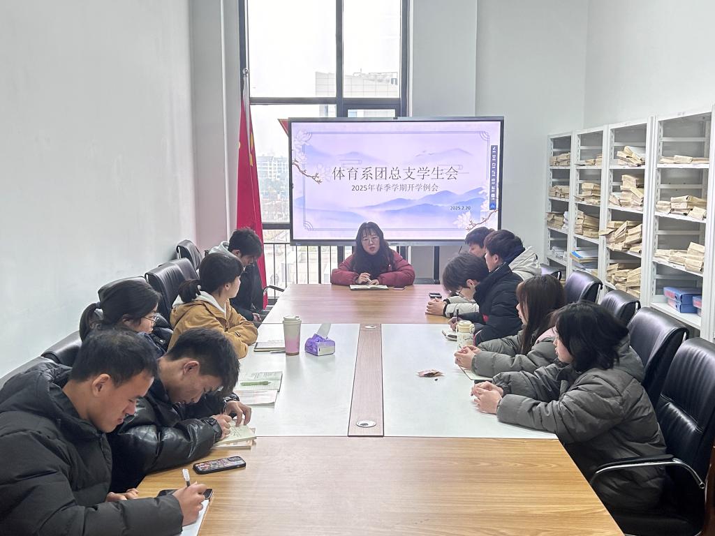 本网讯(通讯员尧喆豪)为全面部署新学期团学工作,加强团学干部队伍建设,体育系于2025年2月25日下午4:30在系部会议室召开了2025年春季学期团总支员工会开学工作例会。本次会议由体育系党总支副书记赵婉君主持,全体团学干部参加会议。