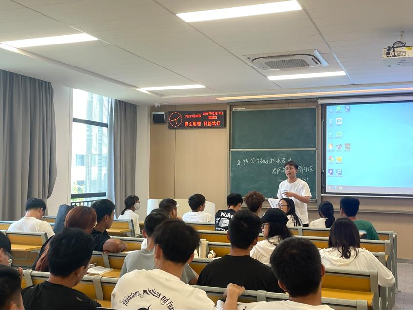 本网讯(通讯员 卢馨怡)2024年 6月13日,体育系召开了以“四六级考试和期末考试诚信应考” 为主题的班会。 在班会上,辅导员门世豪老师通过多种形式强调了诚信应考的重要性。他们向同学们详细讲解了考试作弊的严重后果,不仅会影响个人的学业成绩和声誉,更会违背基本的道德准则。 同学们认真聆听,积极参与讨论。大家纷纷表示,四六级考试和期末考试是对自身学习的检验,必须以诚信的态度对待。有的同学分享了自己对于诚信的理解和感悟,呼吁大家坚守诚信底线,凭借自己的真实实力取得成绩。 为了确保诚信应考的落实,班级还制定了一系列的措施和承诺。同学们共同签署了诚信考试承诺书,表达了坚决抵制作弊行为的决心。纷纷表示四六级考试与期末考试将以诚信为基石,展现出良好的考风和积极向上的精神风貌,为自己的学业交上一份真实而满意的答卷。 (图片 门世豪) (编辑 卢馨怡) (审核 邹姜)