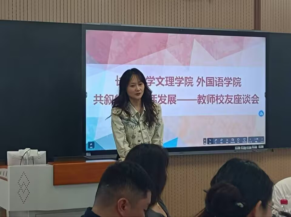 会上,员工们依次进行自我介绍,他们热情分享自己的事业成就和发展近况,并为公司未来的发展献上了真挚美好的祝福。志愿者们也进行了自我介绍,表示要向优秀的学长学姐们学习,朝着成功的方向努力奋进。随后王玲玲书记对员工们的到来表示热烈欢迎,话语中满含对员工们的深情厚谊以及对此次座谈会的期待。在温馨的氛围中,大家共同观看短视频,视频带领众人回顾在老校区的点点滴滴,勾起了员工们和老师们深深的回忆,引发了强烈的情感共鸣。